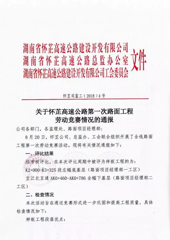 [華霆:懷芷路面]榮獲懷芷公司路面工程勞動(dòng)競賽通報(bào)獎(jiǎng)勵(lì)