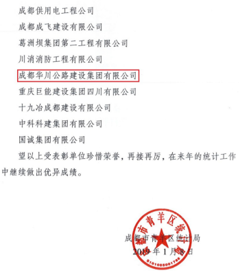 由于上報(bào)時(shí)間及時(shí)、數(shù)據(jù)準(zhǔn)確、流程規(guī)范,集團(tuán)公司、華途公司、華霆公司在青羊區(qū)200余家建筑企業(yè)統(tǒng)計(jì)工作考核評(píng)比工作中脫穎而出,體現(xiàn)了集團(tuán)公司及子公司已規(guī)范按照國(guó)家大數(shù)據(jù)統(tǒng)計(jì)工作要求開展、落實(shí)工作,具有先進(jìn)性及代表性。