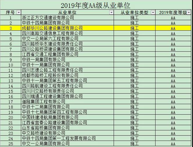 四川省交通廳于6月28日對2019年四川省公路施工企業(yè)信用評價結(jié)果進(jìn)行公示,集團(tuán)公司再次榮獲“AA”級