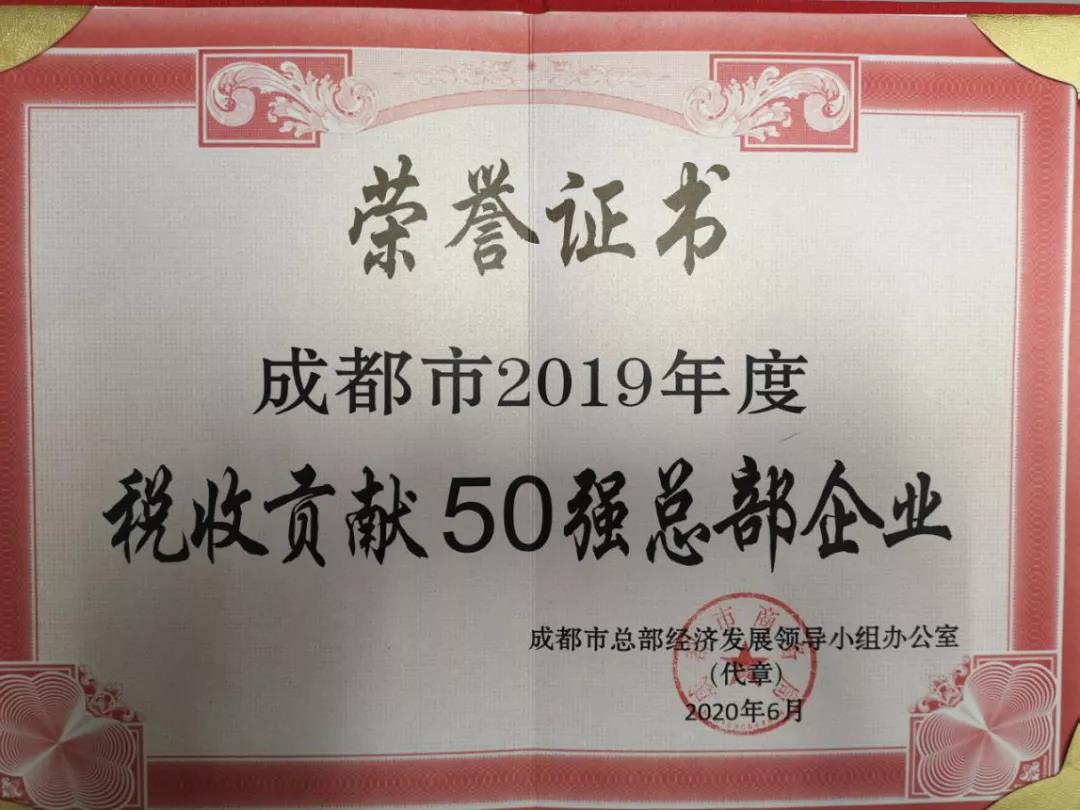 近期,經(jīng)成都市總部經(jīng)濟發(fā)展領(lǐng)導小組評選,集團公司榮獲“成都市2019年度稅收貢獻50強總部企業(yè)”稱號。