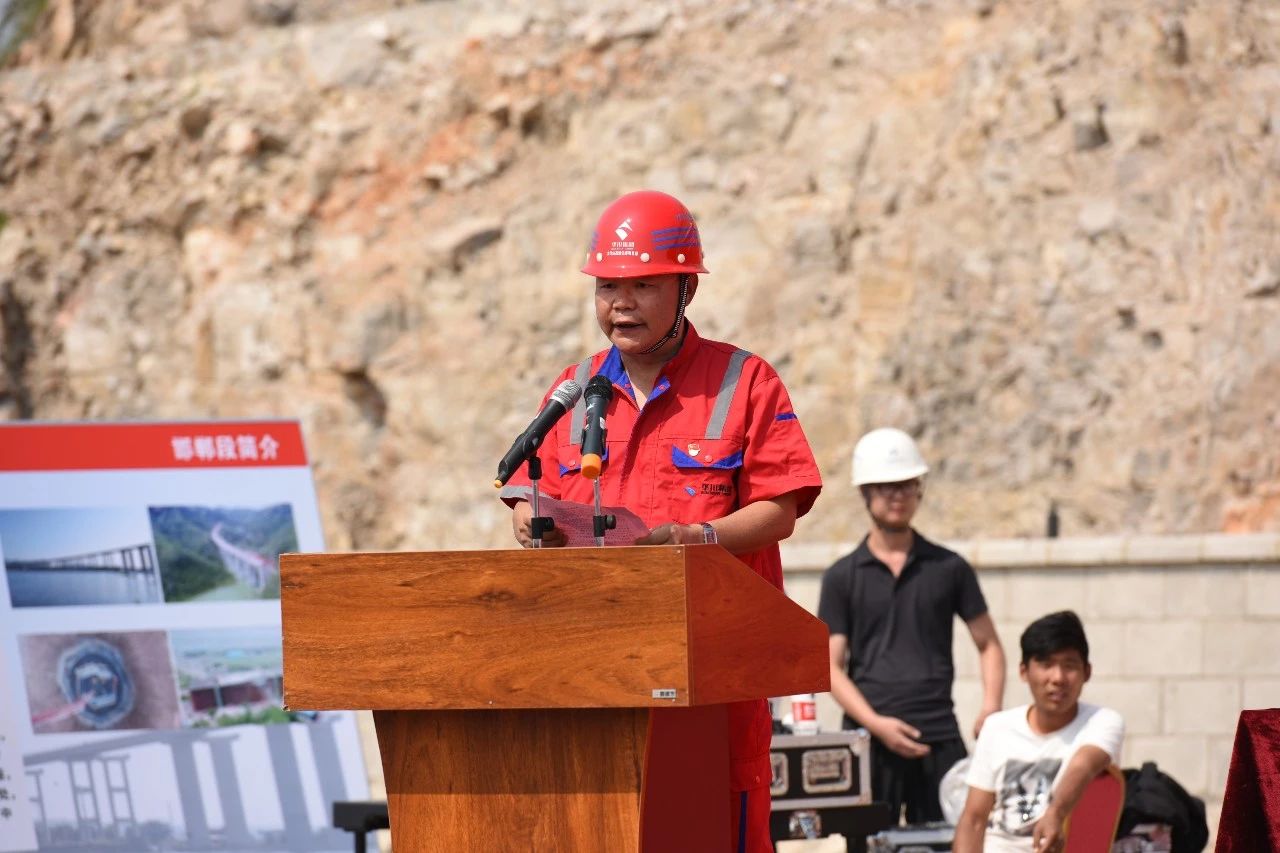 會(huì)議首先由項(xiàng)目公司總經(jīng)理劉司坤對(duì)太行山高速在2018年最后3個(gè)月的沖刺工作進(jìn)行了安排部署,隨后由太行山高速建設(shè)施工單位負(fù)責(zé)人進(jìn)行表態(tài)發(fā)言。牟世輝代表邯鄲段發(fā)言:太行山高速邯鄲段年底建成通車的目標(biāo)任務(wù)是不可動(dòng)搖的,邯鄲段全體參戰(zhàn)單位、員工將緊密圍繞通車目標(biāo),堅(jiān)定信念,上下一心,加強(qiáng)組織領(lǐng)導(dǎo),加大施工力量投入,全面做好保障工作,落實(shí)責(zé)任分工,強(qiáng)化工作措施,加大推進(jìn)力度,進(jìn)一步完善獎(jiǎng)懲措施,充分調(diào)動(dòng)積極性,形成攻堅(jiān)決戰(zhàn)的氛圍,在最后通車決戰(zhàn)100天的沖刺中,鼓足干勁、勇往直前、不計(jì)得失,誓為決戰(zhàn)通車不勝不歸。