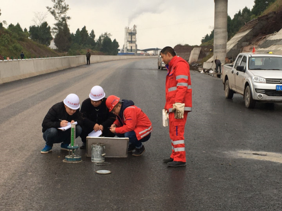 此次預(yù)驗(yàn)收檢查組由業(yè)主公司、監(jiān)理駐地辦、監(jiān)理試驗(yàn)室、總包部以及第三方檢測(cè)機(jī)構(gòu)代表共同組成。嚴(yán)格按照交驗(yàn)的技術(shù)標(biāo)準(zhǔn)及設(shè)計(jì)要求進(jìn)行,對(duì)K52+601.6~K59+125處全幅段落路面施工的寬度、橫坡、厚度、壓實(shí)度、滲水系數(shù)等指標(biāo)嚴(yán)格檢測(cè)。