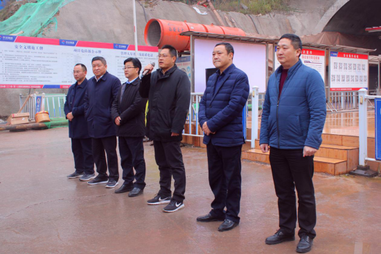 12月5日上午9時,華途公司通江項目春在隧道右洞貫通儀式在隧道出口端舉行,通江縣委書記孫輝、副書記何奎,縣長王軍、副縣長羅旭輝,縣交通運輸局、財政局等領導出席,業(yè)主公司董事長蘇川,集團副總裁楊開榮、華途公司總經理趙君等參加了儀式。